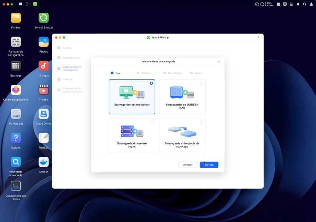 Pour cela, on va utiliser l’application « Sync et Sauvegarde » disponible sur UGOS. Auparavant, il faudra avoir installé l’application sur l’ordinateur, téléchargeable sur le site UGREEN.