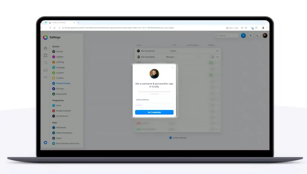 Même si l’utilisation de la box restait locale, jusqu’à présent, pour se connecter à son interface, cela passe par le cloud. Pour cela, on passe par l’adresse « http://my.homey.app« . Cela présente l’avantage de pouvoir se connecter depuis l’extérieur sans se poser de questions.