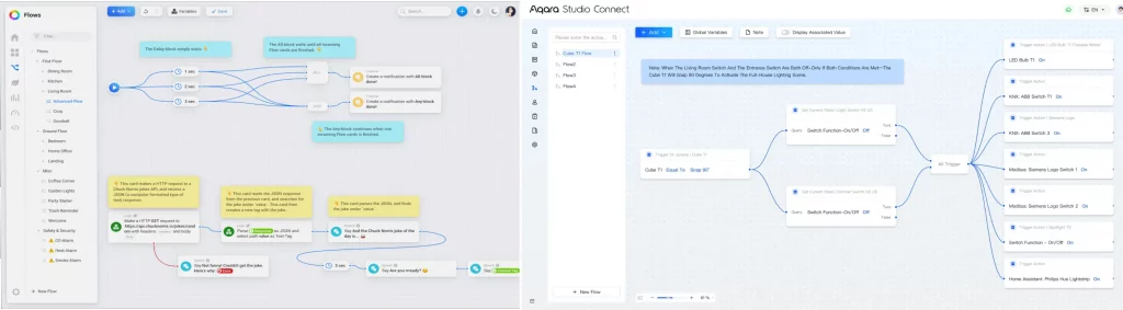 Pour l’anecdote, il a également été question de l’Aqara Studio Connect, dont je vous ai parlé il y a quelque temps, et dont l’interface de création des automatisations ressemble très fortement aux Advanced Flow de Homey.