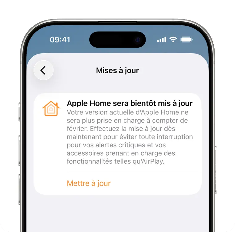 Apple avait fixé la date au 10 février 2026. Si vous n’avez pas eu de message, c’est que vous êtes probablement déjà sur la nouvelle architecture. Vous pouvez aller le vérifier dans les réglages du domicile, mises à jour. Si rien n’est indiqué, c’est que tout est en ordre ! Dans le cas contraire, faites la mise à jour pour éviter tout dysfonctionnement de votre domotique.